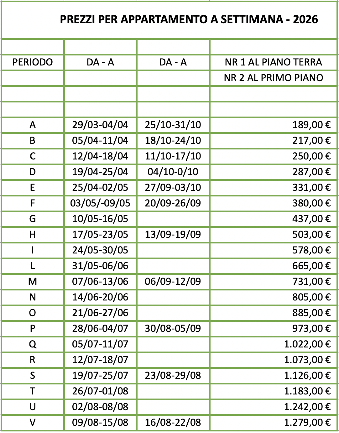 - Sono richiesti euro 160 per cauzione restituibile a buon fine vacanza.